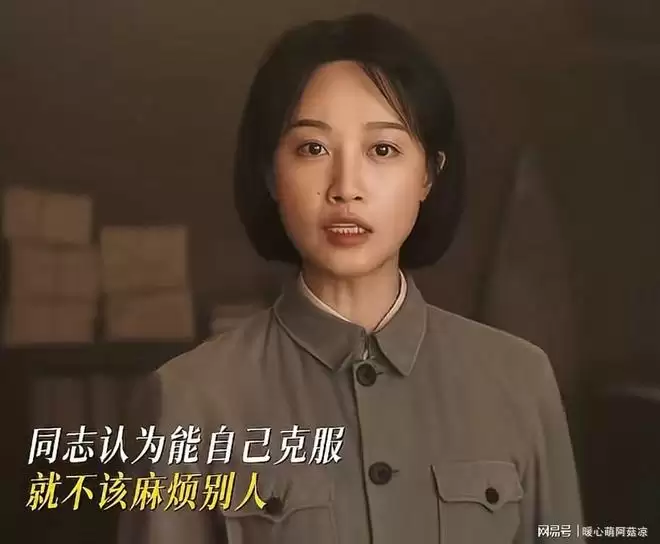 她演的角色叫康大姐,在队伍里起带头作用,但她给同志们演讲那段,看着真的很不舒服。