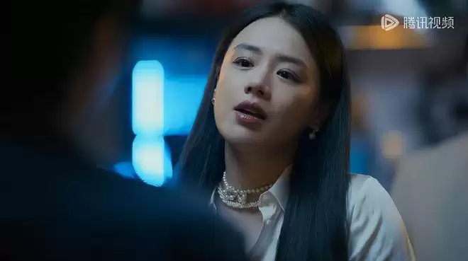 程潇波浪长发、黑裙红唇造型登场,表面是疏离冷艳的酒吧老板,实则暗藏温柔。程潇双剧同播,除了《人之初》,还在《玉茗茶骨》演荣家二小姐,精明爱算计的人物,反差很大。