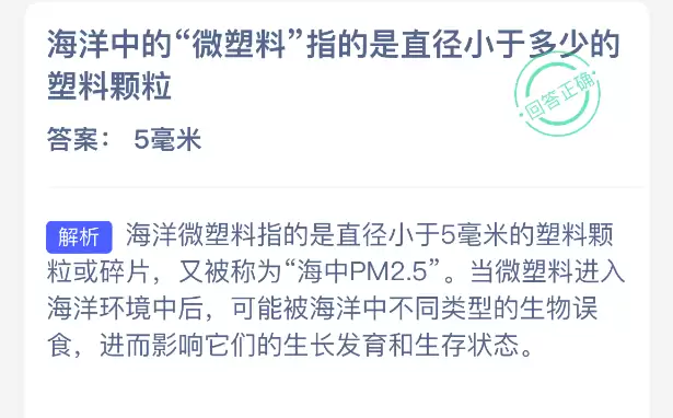 提起海洋里的“微塑料”,您知道它指的是直径小于多少的塑料颗粒吗?【神奇海洋】2026年1月7日的新题目已经揭晓答案!正确答案现已公布,快点击领取拼图,一起为修复海洋生态贡献力量吧!今日正确答案是:【5毫米】。海洋微塑料特指直径小于5毫米的塑料颗粒或碎片,它们又常被称为“海中的PM2.5”。
