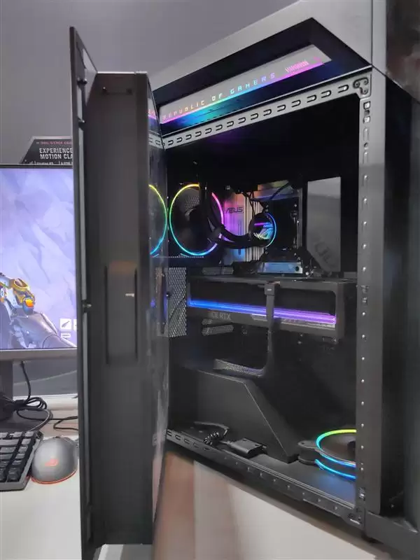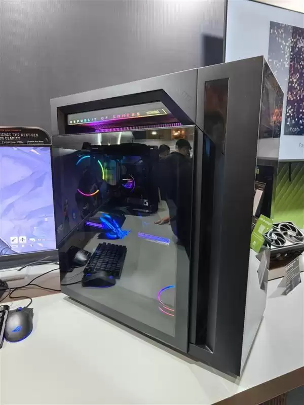 在CES2026上ROG带来了一款超高颜值旗舰电竞台式机——ROG枪神10X。这款拥有104升超大内部空间的塔式主机,凭借其全球首创的全息投影技术,重新定义了电竞主机的视觉表达,让在场观众眼前一亮。