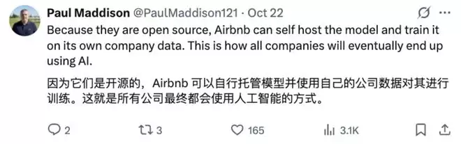 如今,这种“C端带动B端”的效应已经凸显:在硅谷,Airbnb、苹果、亚马逊等巨头都在使用Qwen模型,Airbnb CEO布莱恩·切斯基甚至公开表示“公司大量依赖Qwen模型,因其性能优于OpenAI模型更快更好。”