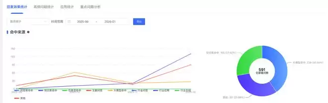从2025年9月上线,到12月提交论文,选课学生中有超过75%访问了AI助教,约60%向AI助教提出了问题。在所有提出问题的学生中,约有40%进行了10轮及以上的对话。从访问时间来看,出现过两个高峰。第一个高峰在10月,命中提问的信息主要来自大模型本身。第二个高峰在12月,命中问题的信息主要来自知识库。