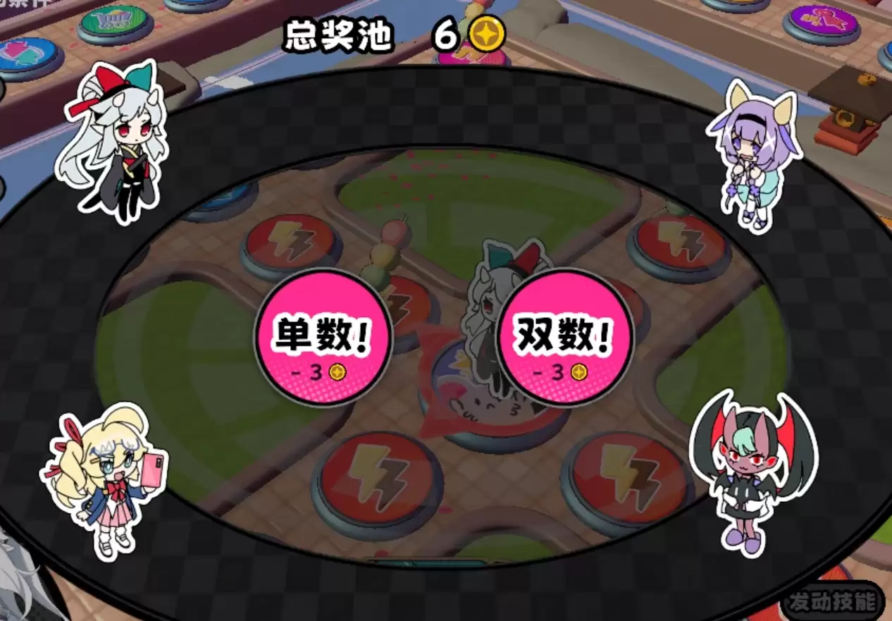 除此之外,地图里能为玩家加星币的事件非常多,除了常规的“天降横财”等措施外,还可通过“挑单选双”从奖池里领取奖金。该事件触发时所有人都将投掷一次骰子,并以四人投出的点数总和来决定是“单数胜”还是“双数胜”。每次投掷骰子都需要消耗3星币来参与,一旦获胜收益很高,连续来几次就能在几回合内积累起升三星所需的星币,因此这一事件也是玩家在落后时用于翻盘的方法。