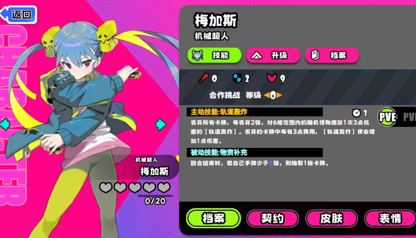 在《吉星派对》中,如何驾驭机械超人梅加斯这个独特的角色?作为游戏中辨识度极高的角色之一,她的核心玩法围绕着一个关键机制展开:"弃牌,制造伤害"。梅加斯并没有传统意义上的攻击叠加或连招体系,而是通过主动技能触发范围性伤害,在标准模式与合作模式中呈现出截然不同的战术定位。