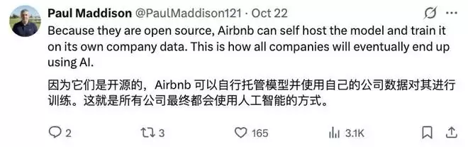如今,这种"C端带动B端"的效应已经凸显:在硅谷,Airbnb、苹果、亚马逊等巨头都在使用Qwen模型,Airbnb CEO布莱恩·切斯基甚至公开表示"公司大量依赖Qwen模型,因其性能优于OpenAI模型更快更好。"