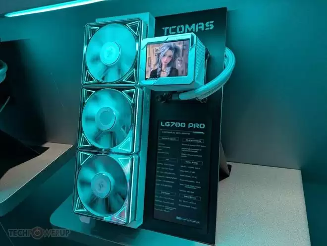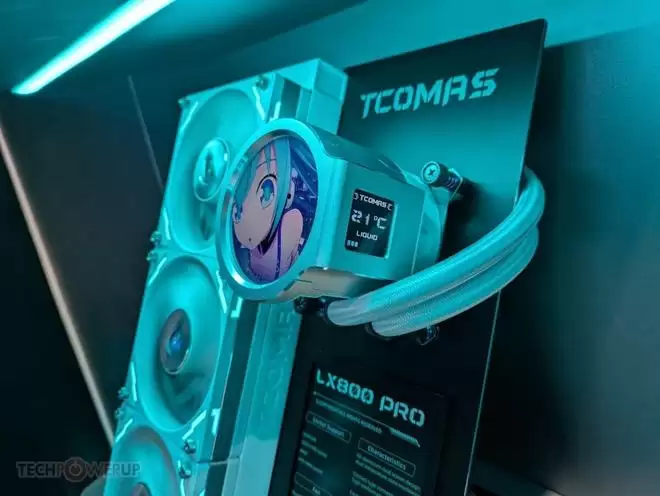 在旗舰产品之外,钛钽还展示了一款极具创意的次旗舰产品——LX800 PRO。这款水冷散热器的设计理念在于“选择权”,它将冷头顶部的功能模块做成了可更换设计,赋予了玩家更多的自由度。