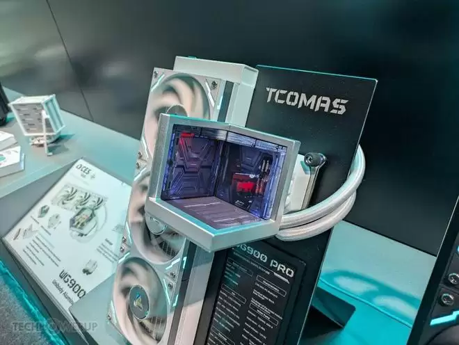走进钛钽的展台,最先映入眼帘的便是被放置在C位的两款旗舰级一体式水冷散热器——WZ800 PRO和WG900 PRO。这两款产品无疑是钛钽在散热领域技术实力的集大成者,它们不仅在性能上追求极致,更在视觉交互上玩出了新花样。