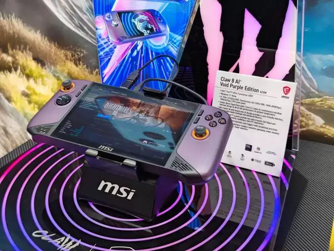 本次CES 2026期间,微星的人气Windows掌机产品线CLAW并没有全新的机型公布,但迎来了全新的蓝色配色,微星CLAW已经是目前Windows掌机产品中可选颜色最为丰富的机种了。此外还展出了一款紫色的配色,目前正在征集意见,如果反响较好,紫色的Claw后续也将会投放市场。
