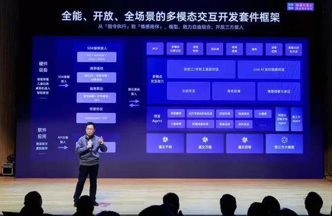 【环球网科技综合报道】1月8日,在阿里云通义智能硬件展上,阿里云正式推出多模态交互开发套件。该套件集成了千问、万相、百聆三款通义基础大模型,并预设了生活休闲、工作效率等多个领域的智能体与工具,旨在为AI眼镜、学习机、陪伴玩具、智能机器人等硬件设备赋予更强的感知、理解和交互能力。