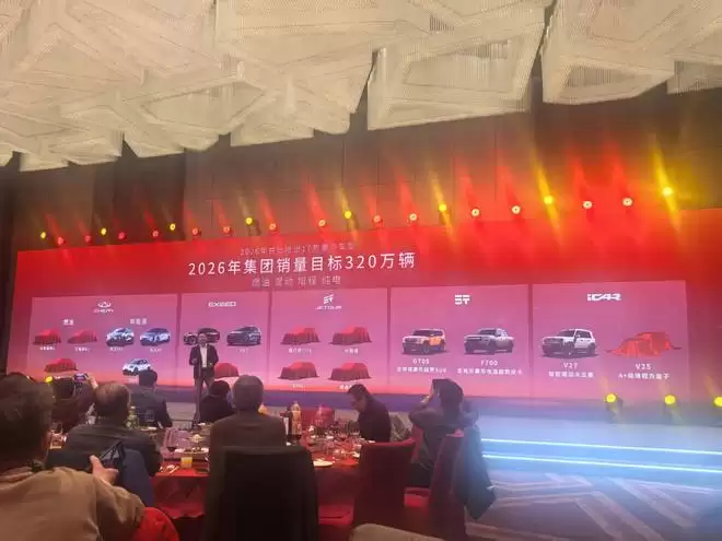 奇瑞2026年销量目标320万辆,将推17款新车抢占市场