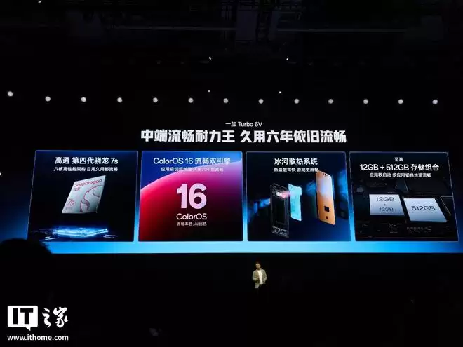 此外,一加 Turbo 6 还配备旗舰同款冰河散热系统、独家自研电竞 Wi-Fi 芯片 G1、独家自研灵犀触控芯片、旗舰级陀螺仪,号称可保证持续性能输出,用户全程高帧且流畅的沉浸式游戏体验。