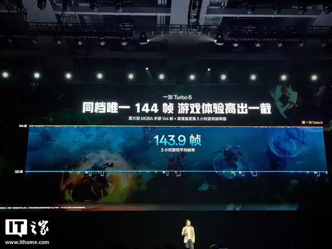 IT之家从发布会现场获悉,一加 Turbo 6 还率先实现 Turbo 档 165 / 144 / 120 三档满帧玩,成为同档唯一支持《王者荣耀》原生 144 帧模式的机型,可实现 3 小时持续满帧游玩。