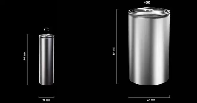 4680电池顾名思义,指直径46毫米、高度80毫米的圆柱形电池,2170电池则是直径21毫米,高度70毫米。相比后者,4680电池体型更大,容量更高,同样的电池包电芯数量更少,节省电芯部件。