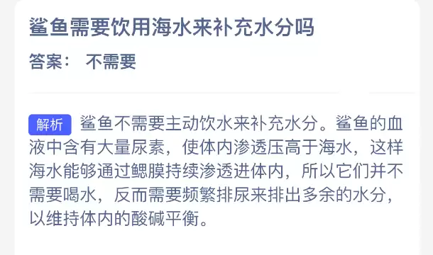 鲨鱼靠喝海水补充水分吗?支付宝海洋答案2026年1月8日