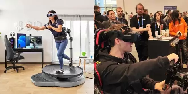 ▲右:Virtuix的VR跑步机;左:小派科技PCVR新品