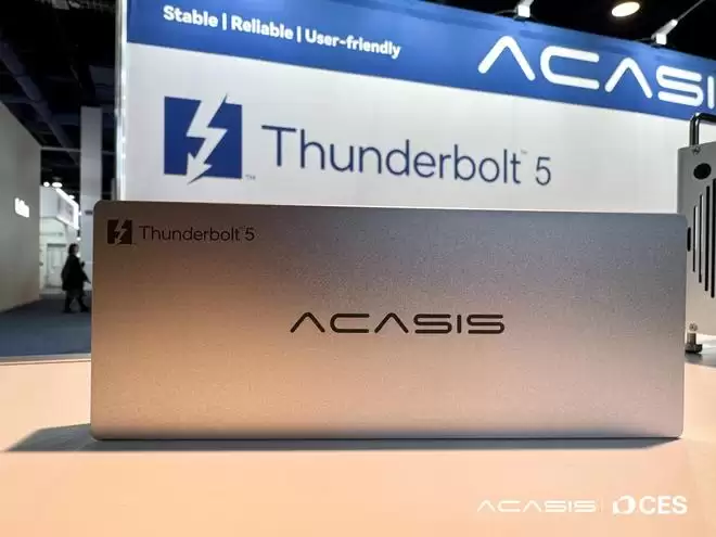 IT之家 1 月 9 日消息,国内生产力硬件配件企业 ACASIS 阿卡西斯在 CES 2026 上展示了全球首款满速 4 盘位雷电 5 硬盘盒:该型号同时拥有多个高速雷电 5 接口,在同时连接时可