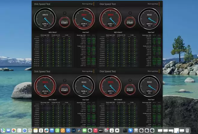 这款创新产品配备多个高速雷电5接口,可同时连接四块SSD固态硬盘,实现每块硬盘顺序写入速度均突破6000MB/s。每个盘位最高支持8TB容量,机身采用金属格栅散热设计,特别适合8K视频剪辑等需要高速传输与大容量存储的专业应用场景。