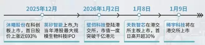 就在一天前,国内最早投身通用GPU(图形处理器)领域的上海企业天数智芯也在港交所上市,而在1月2日,壁仞科技已登陆港交所。加上去年12月上市的沐曦股份和英矽智能,不到一个月就已有“五朵金花”相继绽放。这批企业全部位于人工智能相关的前沿科技核心赛道,包括芯片设计、生物计算、大模型等多个领域。