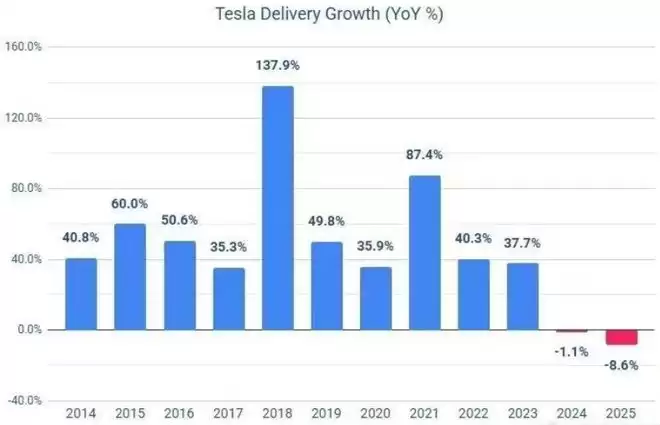 2025年第三季度,特斯拉全球交付量达49.7万辆,同比增长7.4%,大幅超出市场预期,主要就是受益于美国市场上电动汽车税收优惠取消而提前释放的需求,但这也直接透支了第四季度的市场需求。