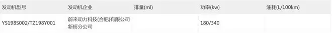 动力方面,该车将搭载由蔚来动力科技(合肥)有限公司新桥分公司所生产、型号为YS198S002/TZ198Y001的前后驱动电机,最大功率分别为180千瓦和340千瓦。电池方面,其预计搭载102kWh电池组。