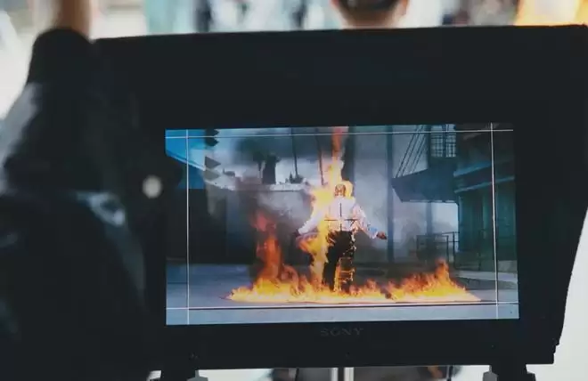 亚历山大部分。他的大片概念是一个特技演员,在片场进行一场危险的焚烧表演。