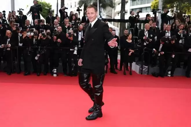 在戛纳,你在造型上玩得很开心。我的灵感来自电影里的角色们。英国的“同志摩托车俱乐部”(GBMCC)成员参与了电影拍摄,他们穿着全套装备,包括束缚带,来到戛纳首映式。其中一位还带来了他的“幼犬面具”。穿着常规的黑色燕尾服亮相显得太无聊了。我想为红毯带来一点皮革元素。