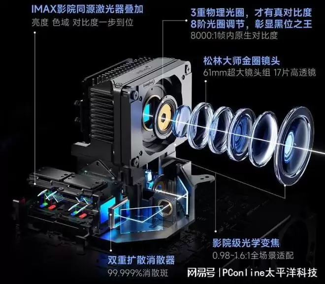 与Max系列一致的松林大师金圈镜头,更是将这份影像基因精准落地,61mm超大口径搭配17片高透镜片,不仅实现了131 LP/mm的超高清晰度,较十万元级专业投影还提升40%,更能做到ΔE≈0.8的近乎零色差表现,让画面细节与色彩还原达到专业级水准。相较于Max系列5800 CVIA流明的亮度,S7 Ultra Pro调整至5300 CVIA流明,内存也从8G精简为4G,但这些调整均避开了核心影音体验区,日常观影几乎感受不到差异。