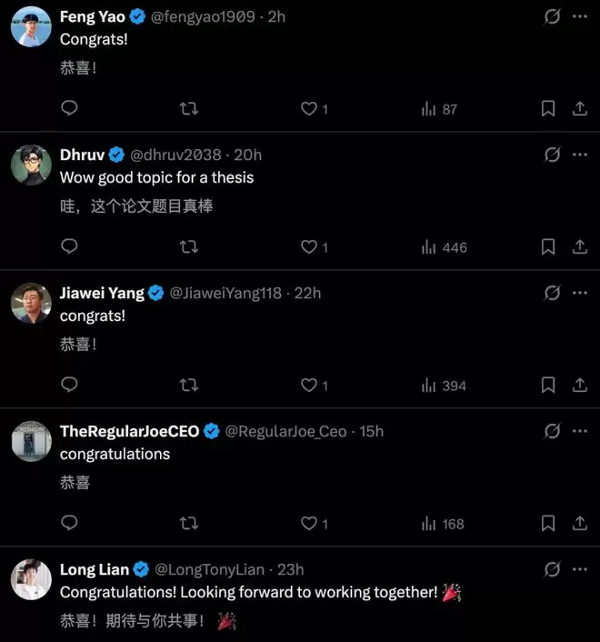 评论区下方,英伟达科学家、xAI研究员、UCSD等一众大佬,为他本人送上了祝贺。