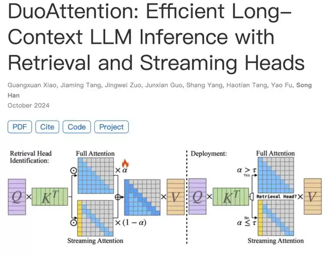 他和团队提出了DuoAttention,结合检索与流式注意力头,实现高效推理。