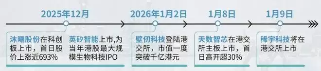 就在一天前,国内最早投身通用GPU(图形处理器)领域的上海企业天数智芯也在港交所上市,而在1月2日,壁仞科技已登陆港交所。加上去年12月上市的沐曦股份和英矽智能,不到一个月就已有“五朵金花”相继绽放。这批企业全部位于人工智能相关的前沿科技核心赛道,包括芯片设计、生物计算、大模型等多个领域。