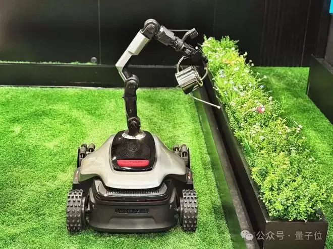 另一款让人眼前一亮的机器人,是这次首次亮相的具身智能割草机器人