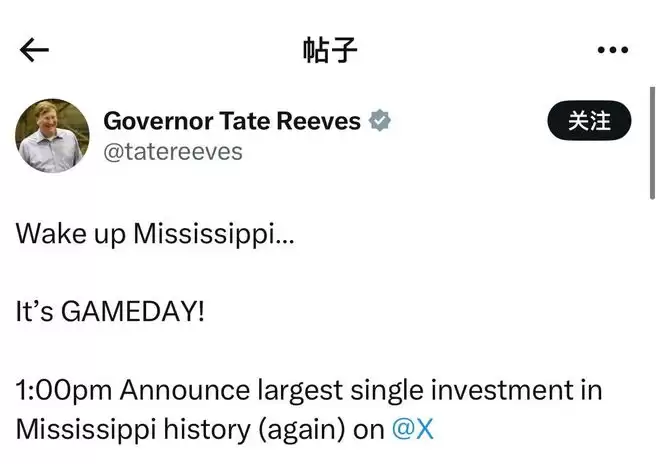 1月8日,密西西比州州长泰特·里夫斯在社交平台X上确认了这项投资,称其为该州历史上最大的一笔单笔投资。这一投资行为是生成式人工智能蓬勃发展的背景下,对计算能力需求增加的直接结果。
