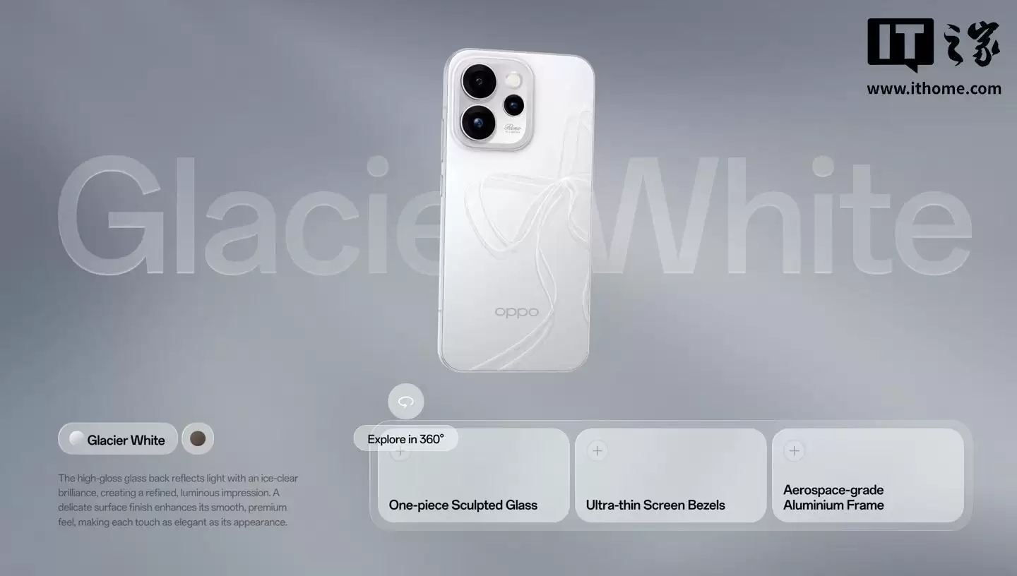 据介绍,该机采用一块AMOLED屏幕,分辨率为2640*1216,支持120Hz高刷新率,峰值亮度可达1800尼特,并覆盖100% DCI-P3色域。机身提供「冰川白」与「可可棕」两种配色,厚度保持在8毫米,重量为187克。其核心搭载联发科天玑8450处理器,辅以LPDDR5X内存和UFS 3.1存储空间。