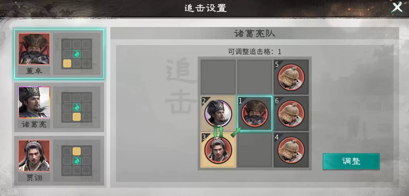 其觉醒技能进一步强化群体控场能力:对敌方全体发动一次强制普攻,攻击目标为该单位任意一名友方,且附带混乱概率。该技能与天赋形成双重触发链——队友控场→贾诩响应→敌方混乱→混乱单位误伤→贾诩回血+敌方减益。因此,贾诩并非独立作战型武将,而是高度依赖队友提供稳定控制频率的“控场放大器”。当前环境中,最成熟的解法是“三控铁壁阵”:由诸葛亮、贾诩、董卓组成核心三角,前排配置三名藤甲兵承担承伤职能,董卓居中后排抗压,诸葛亮与贾诩置于最后两排,确保站位满足追击触发逻辑与生存安全边界。