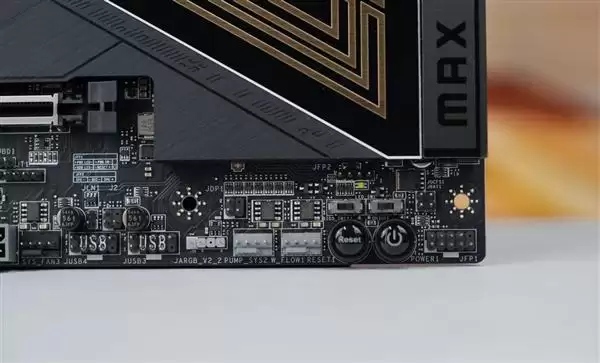 更值得一提的是,所有M.2插槽均标配免工具安装的冰霜铠甲散热片,能有效压制NVMe固态硬盘温度。