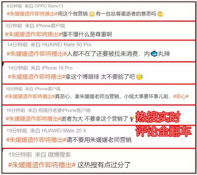 碰瓷动漫不是唯一的槽点,除了她的单人热搜外,还有剧方的热搜里出现了已逝的朱媛媛。