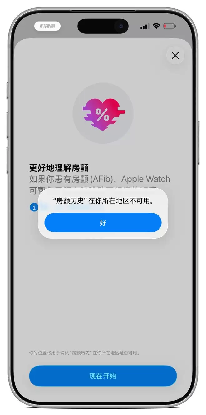 预计苹果会在后续的 iOS / watchOS 26 系统更新中,为国内 Apple Watch 用户开放该功能。目前,在 iPhone 的“健康”App 中查看“房颤历史”时,仍会显示“你所在的地区不可用”。