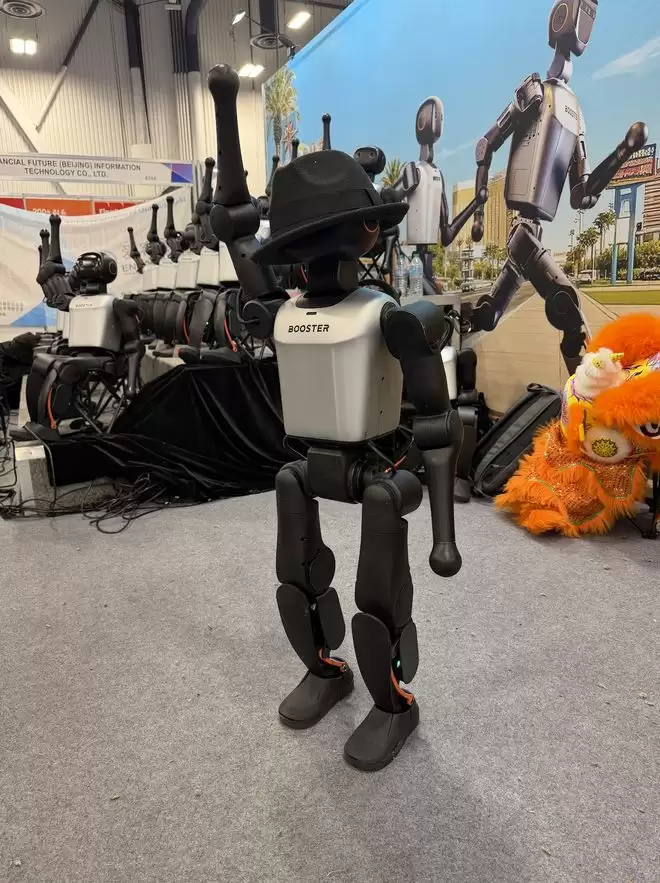 由数十台 Booster K1 组成的加速进化机器人矩阵,在 CES 2026 正展开幕日登台亮相,而这也成了今年参展企业中,人形机器人数量最多的展台。