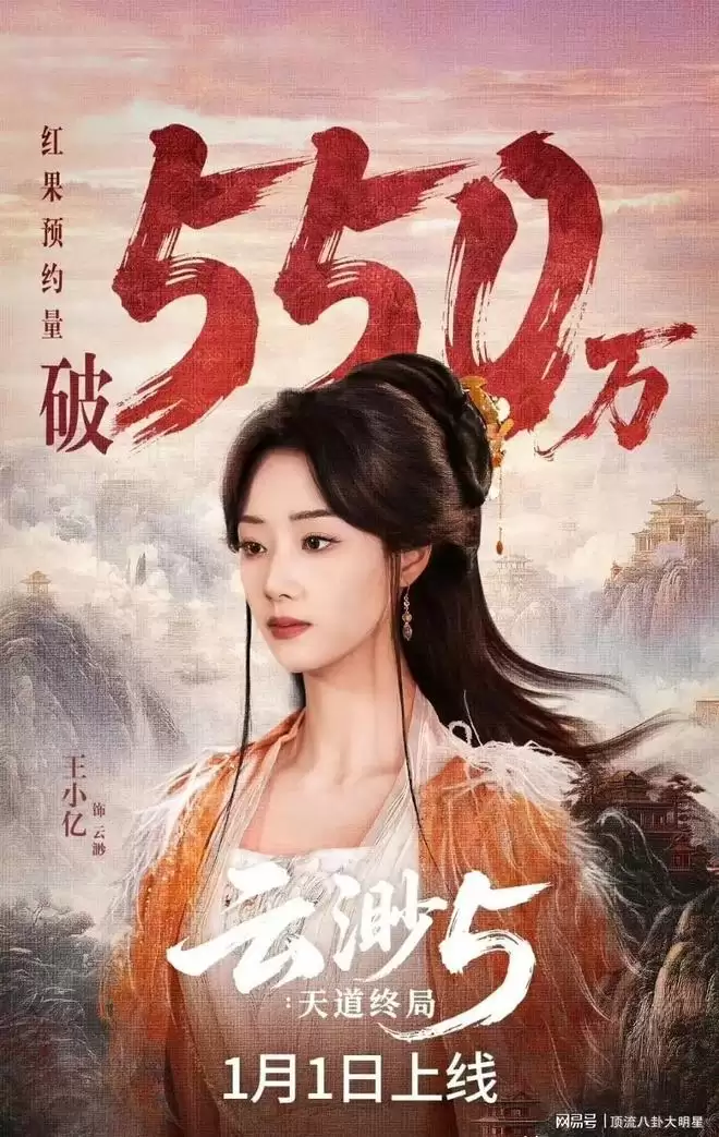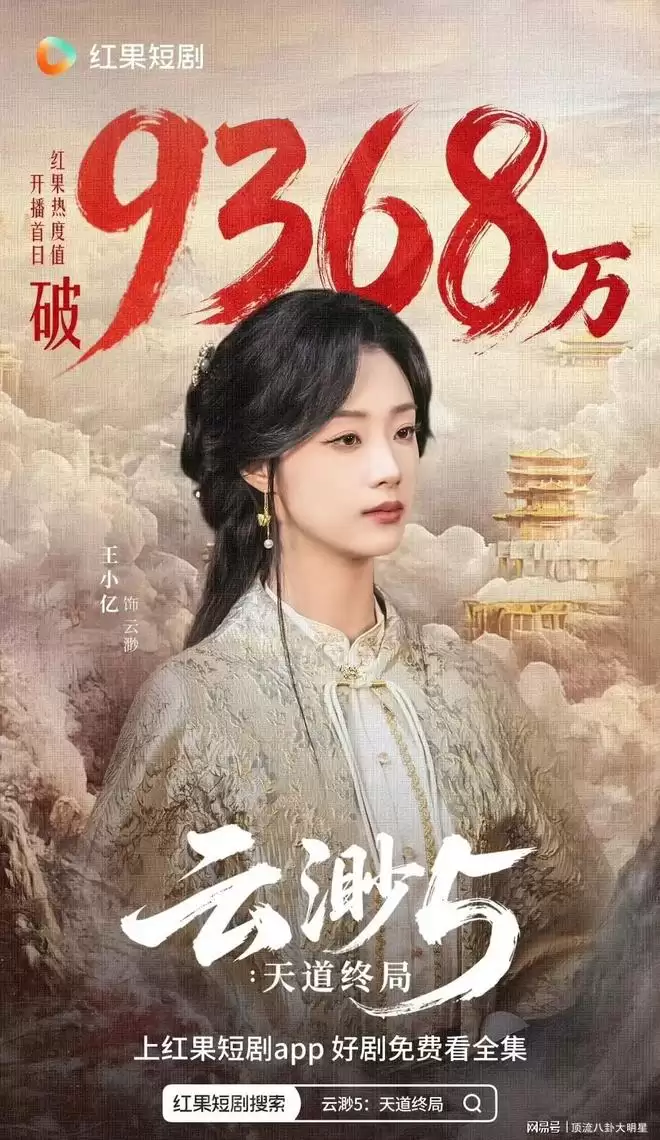 《云渺5:天道终局》收官之作,没有剧粉失望,开播首日热度就突破9368万,直接登顶红果短剧热榜,预约量超550万,收藏量103.5万,点赞量152.6万,成为2026年开年最热修仙短剧之一,稳居收视第三,口碑与热度双线走高。