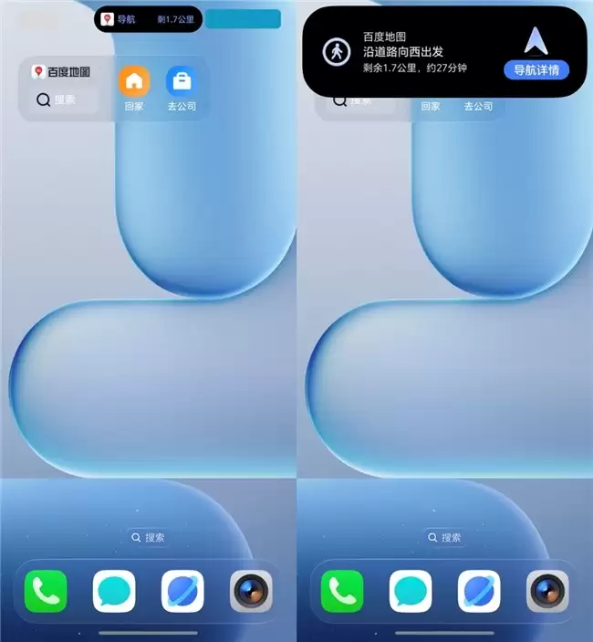 在步行、骑行等多任务并行场景中,用户需要持续关注导航信息却又可能频繁切换手机应用。荣耀MagicOS的灵动胶囊功能提供了优雅的解决方案。百度地图将步骑行的核心导航信息,如行进方向与剩余距离,实时显示于屏幕顶部的灵动胶囊中。即使用户将应用置于后台或浏览其他内容,关键信息依然抬眼可见。这解决了用户以往必须在应用间反复切换或忍受导航中断的困扰,实现了多任务并行下的信息连续体验。