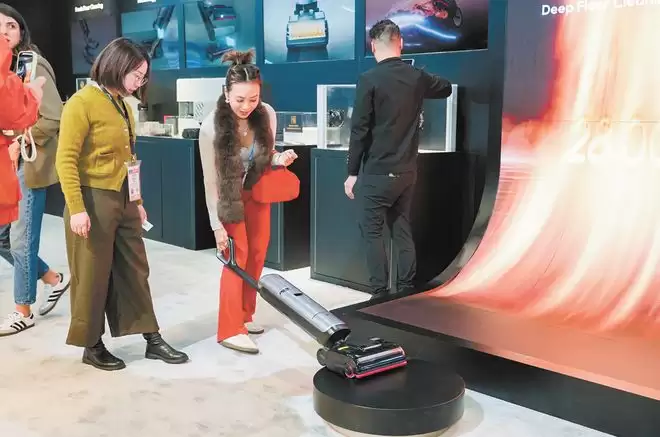 中企追觅科技展出的具身智能洗地机。(视觉中国)