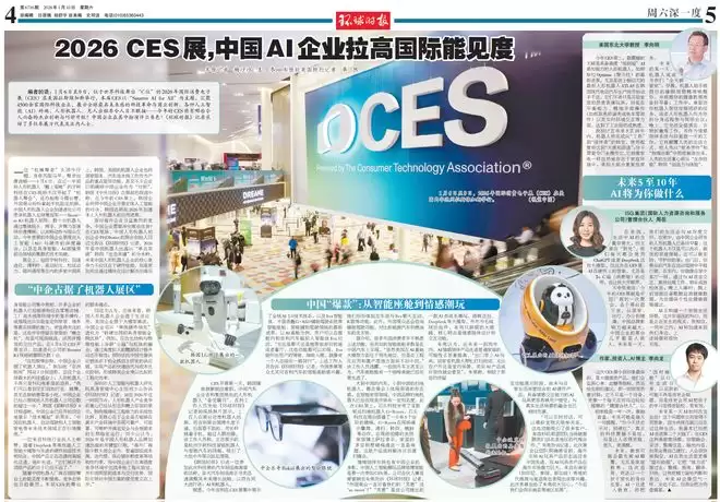 【环球时报记者 杨沙沙 王冬 环球时报驻美国特约记者 卓然】编者的话:1月6日至9日,位于世界科技舞台“C位”的2026年国际消费电子展(CES)在美国拉斯维加斯举行,本届CES以“Smarter AI for All”为主题,汇聚4500余家国际科技企业,展示全球最具未来感的科技革命与商业创新。各种人工智能(AI)终端、人形机器人、无人出租车令人目不暇接……今年的CES将有哪些令人兴奋的杰出创新与巧妙升级?中国企业在其中扮演什么角色?《环球时报》记者采访了多位参展方代表及业内人士。