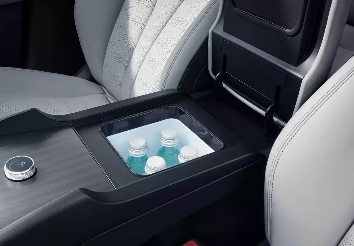 座舱内部,新车搭载的分体式超感座椅支持主驾8向电动调节与副驾4向电动调节,并具备通风/加热功能,四季皆宜。冷暖两用的车载冰箱,冷藏与保温的温度范围分别覆盖-6~15°C以及35~50°C,非常贴心。可开启式全景天窗带来了更为开阔的车内视野与空间感;此外,前排化妆镜照明灯、50W手机无线充电面板、带杯托与中央扶手的第二排座椅、多色氛围灯以及新增的三种场景模式,共同营造出更具品质感的驾乘环境。