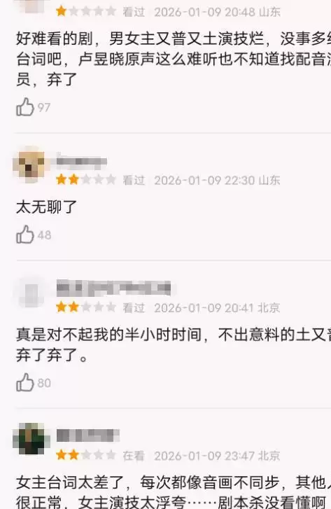 原本形象上已经一般了,卢昱晓的台词还非常一般。