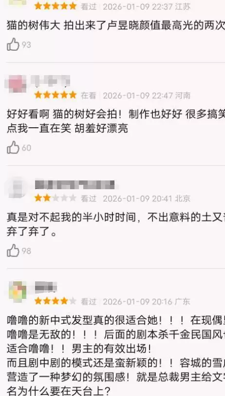 但即便如此,还是有不少观众非常喜欢卢昱晓,在评论区吹捧她颜值的。
