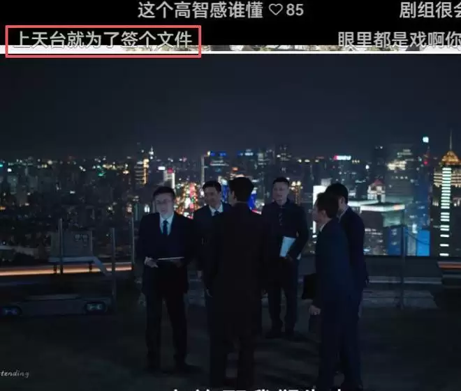 男主超装的上了天台,还有一群下属等着,排面拉满了。