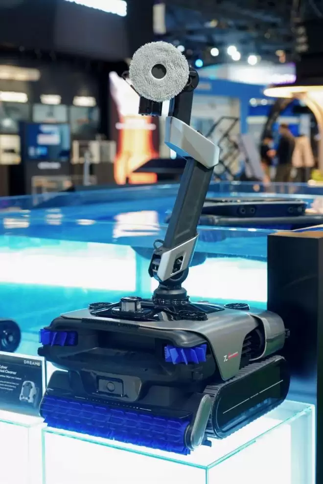 更厉害的是,追觅还展示长了“手”的增强款具身智能泳池机器人。其搭载的机械臂支持三节伸缩、抹布圆盘旋转,可更换的机械臂,能拾取泳池的杂物、擦拭泳池的台阶、清理泳池角落的脏污,甚至还能去疏通泳池的排水口堵住的异物。这些以往都需要人工进行的清洁任务,追觅具身智能泳池机器人统统能完成,泳池不再是难以维护的场景。