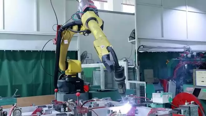 在数字技术的赋能下,福州越来越多的制造企业引入了工业机器人生产线。在福州福享汽车工业有限公司的生产车间内,自动生产线高效运转,机器人沿预设路线自主移动,承担起物料搬运任务,灵活的机械臂运转自如,精准完成新能源汽车电池包的焊接装配。大量工序由机器人自动完成,不仅大幅降低了人工劳动强度,也显著提升了生产效率。