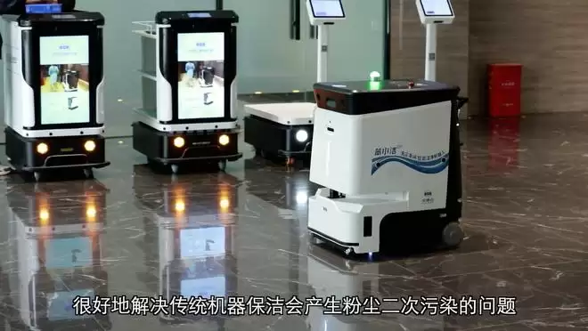 在福建汉特云智能科技有限公司,技术人员正在调试一款专为洁净车间设计的C61智能清洁机器人,该机器人搭配了自动浸湿、便捷换布、自动充电、快捷换电等功能,可实现无人自主清洁。