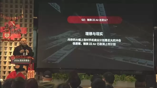 1月10日,IT之家发布消息称,在今日下午举办的2026年魅友新春活动上,当被问及备受期待的魅族22 Air手机是否还会发布时,魅族官方回应道,内存(价格)的大幅上涨给手机商业计划带来了巨大冲击,非常遗憾,魅族22 Air的上市计划已经取消。